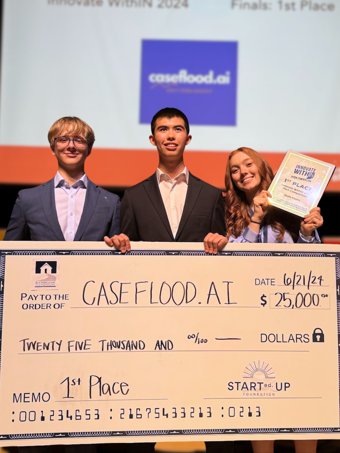 The three were friends in Evansville, Indiana, when they came up with their idea. (Pictured left to right, Tolen Schreid, Ethan Hilton, and Emily Rudolph). Their startup, Caseflood.ai, is an innovative AI receptionist designed for lawyers, helping small law firms efficiently qualify potential clients in multiple languages. Hilton, who has experience in the legal tech industry, identified the challenge small law firms face in managing client inquiries due to limited resources.