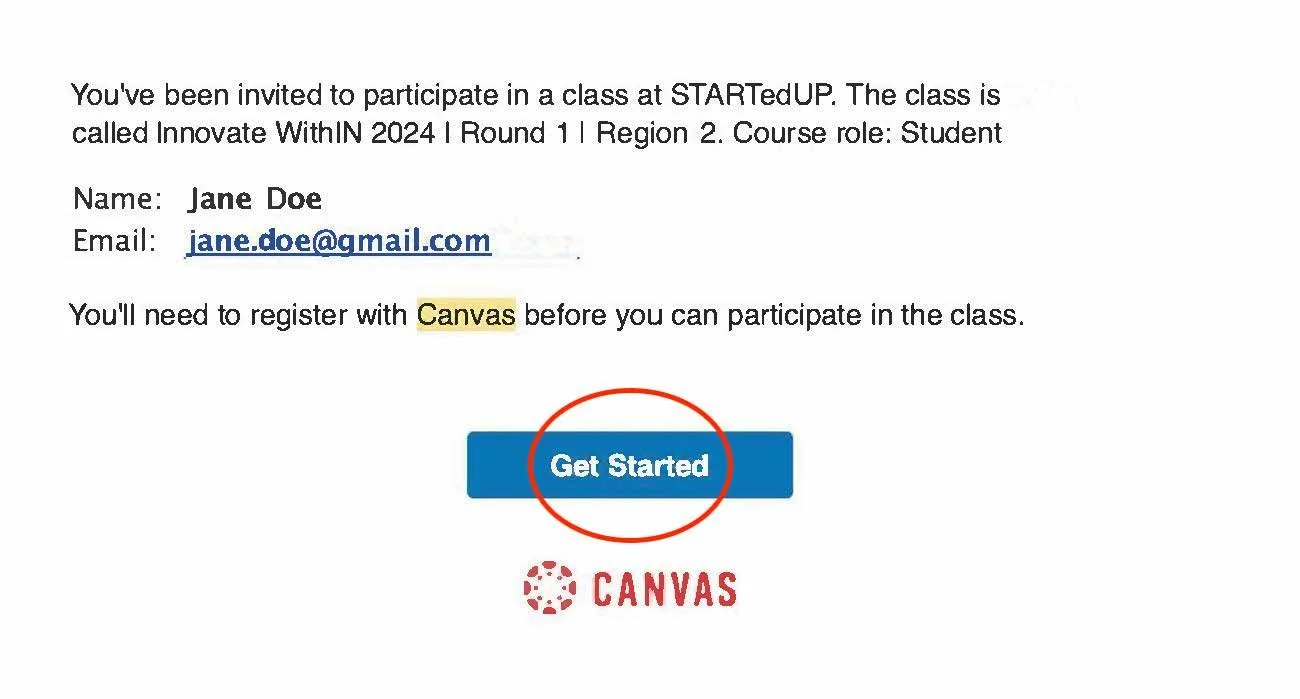 One from Canvas with the course invitation. You are required to complete your Canvas registration to participate in the STARTedUP Challenge.
