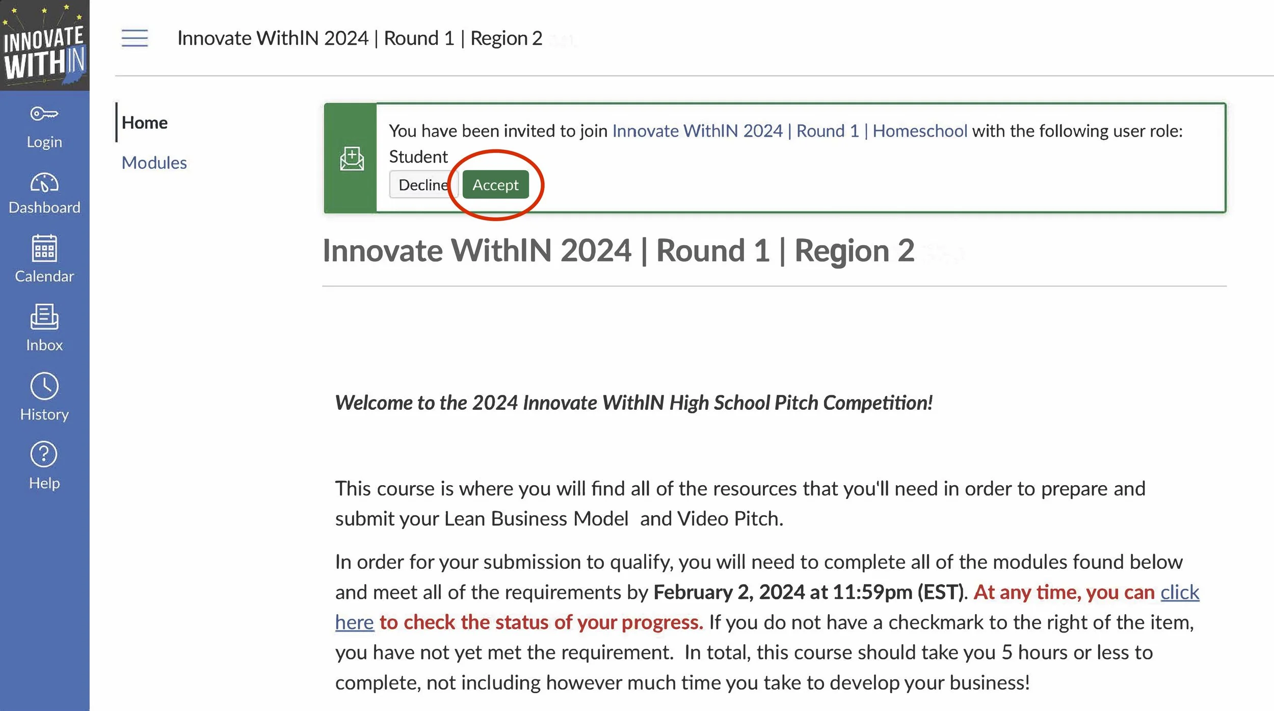 2. Click the green “Accept” button at the top of the screen to accept your invite.
